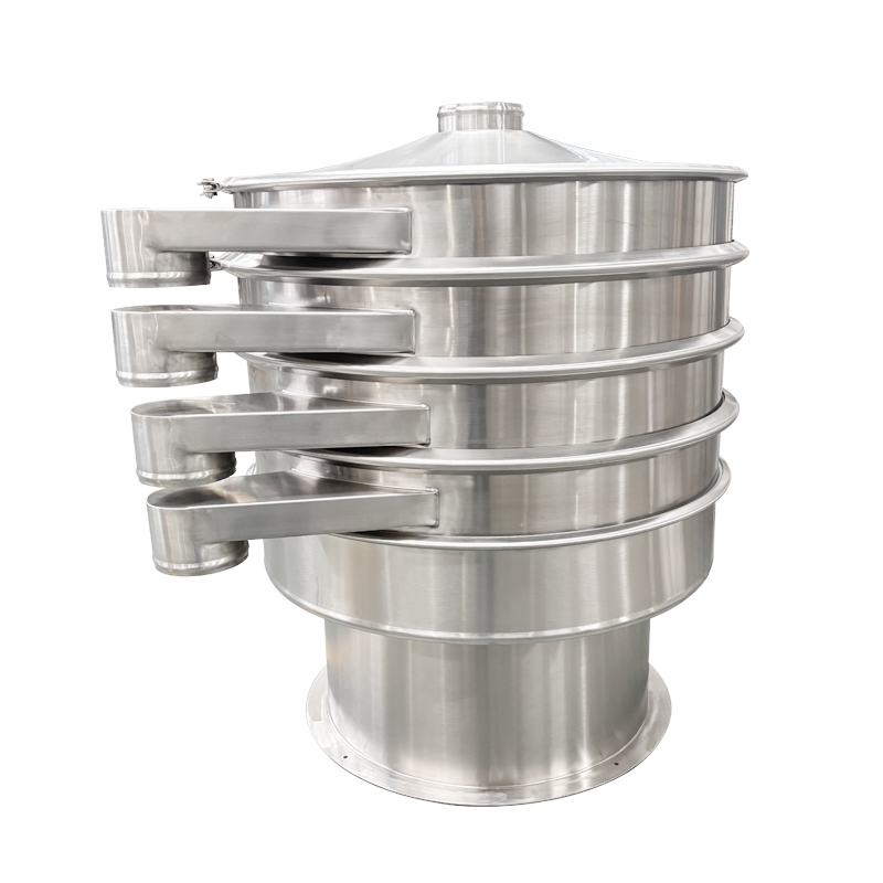 Questa forza di vibrazione agisce sul corpo del setaccio, facendo sì che i materiali sullo schermo del setaccio eseguano un movimento di salto a spirale.i materiali con diametri coerenti con l'apertura dello schermo del setaccio attraversano il setaccio e cadono nello strato inferiore, mentre i materiali che non soddisfano i requisiti continueranno a muoversi lungo la superficie del setaccio e alla fine verranno scaricati attraverso la porta di scarico, ottenendo così la separazione,rimozione delle impurità o filtrazione dei materiali.