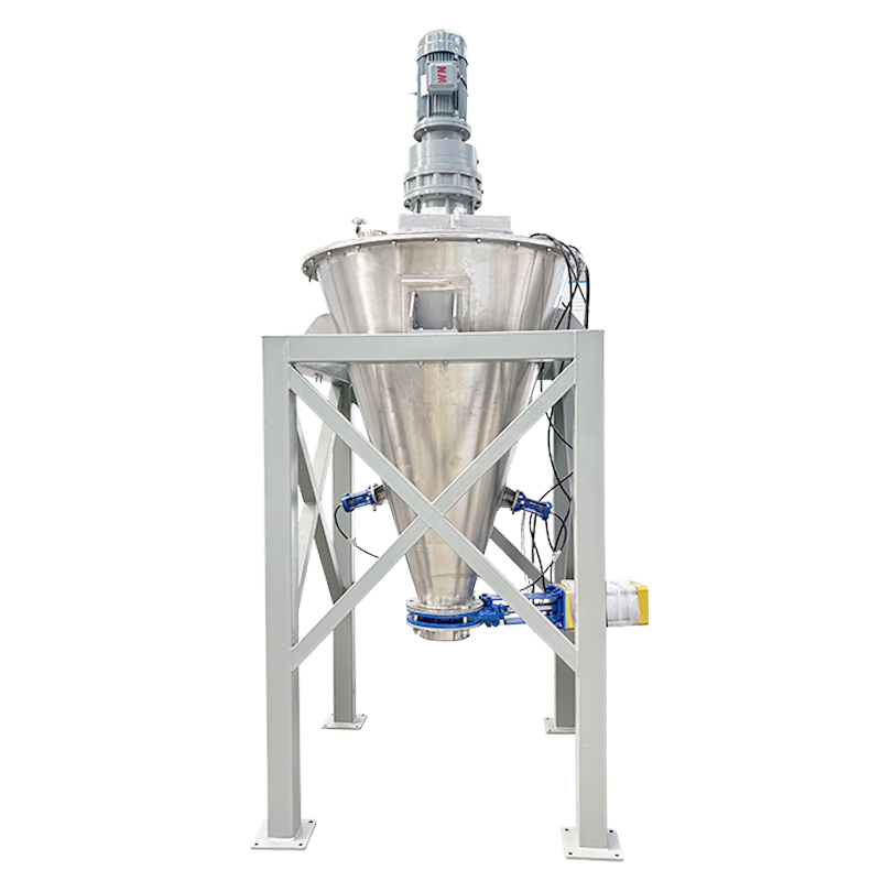 The conical mixer is a well-designed mixing equipment, renowned for its unique conical cavity and efficient double-screw agitator. It can achieve rapid, uniform and gentle mixing of powder, granules and other materials, while ensuring thorough and residue-free discharge. The equipment operates smoothly, has low noise, and has a smooth interior that is easy to clean. It fully complies with strict production standards in industries such as food and chemical, making it an ideal choice for those seeking efficient and reliable mixing processes.